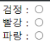 파랑 : <input type="radio" name="color" value="blue"><br>