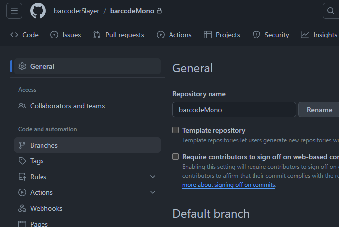 3. 좌측의 메뉴에서 "Branches"를 클릭하세요.