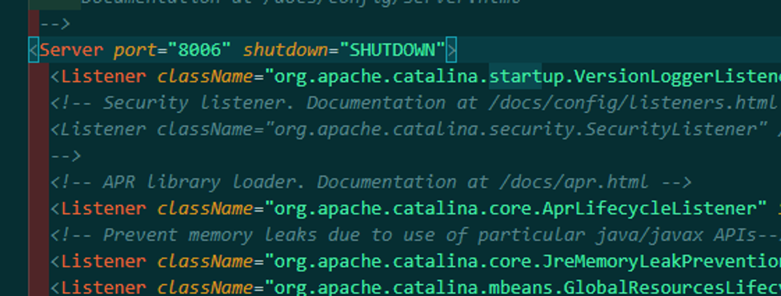 conf폴더에 있는 server.xml 파일을 열어 톰캣을 구동시킬 port를 바꿉니다.