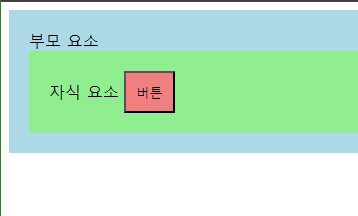 위 코드에서 버튼을 클릭하면, "부모 요소 클릭됨" → "자식 요소 클릭됨" → "버튼 클릭됨" 순서로 알림이 뜹니다.